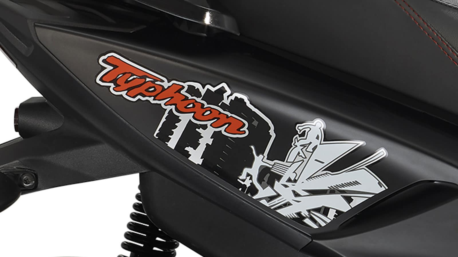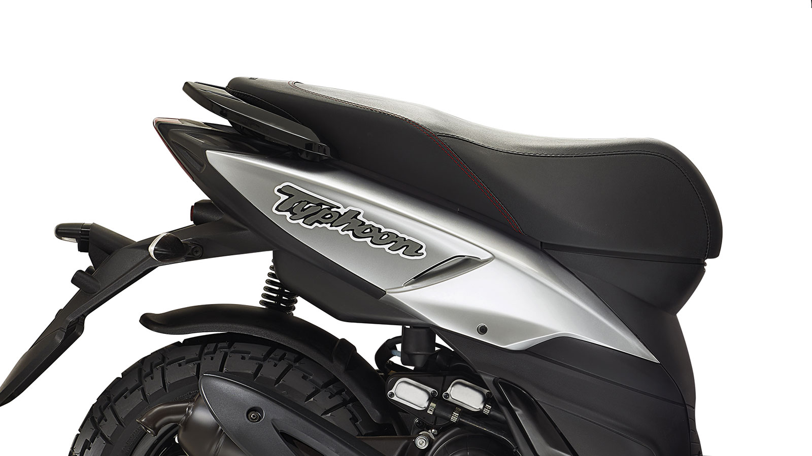 One of Piaggio’s best sellers, the Typhoon 50 enjoys near-icon status among teenagers who love its distinctive aesthetic, its trendy graphics, the sporty, dynamic styling and its range of features designed to deliver a fun experience. Ideal for daily use, perfect for running around town and getting from home to school. These include wide tires with a tread in the off-road style, able to cope with any rigours the city might present, and the zippy single-cylinder four-stroke 50 cc engine which makes driving fun and hassle-free and is now Euro 4 compliant. However, the Piaggio Typhoon 50 is also highly practical, with features such as a spacious underseat compartment, passenger grip handles, an instrument cluster which includes a fuel gauge, a hook where you can hang your bag and a flat footboard to give you greater freedom of movement.