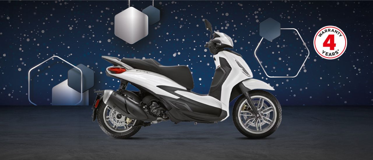 VIER JAHRE FÜR DICH: Hol dir bis zu 4 Jahre Garantie, wenn du einen Piaggio Roller bei einem unserer offiziellen Händler kaufst.