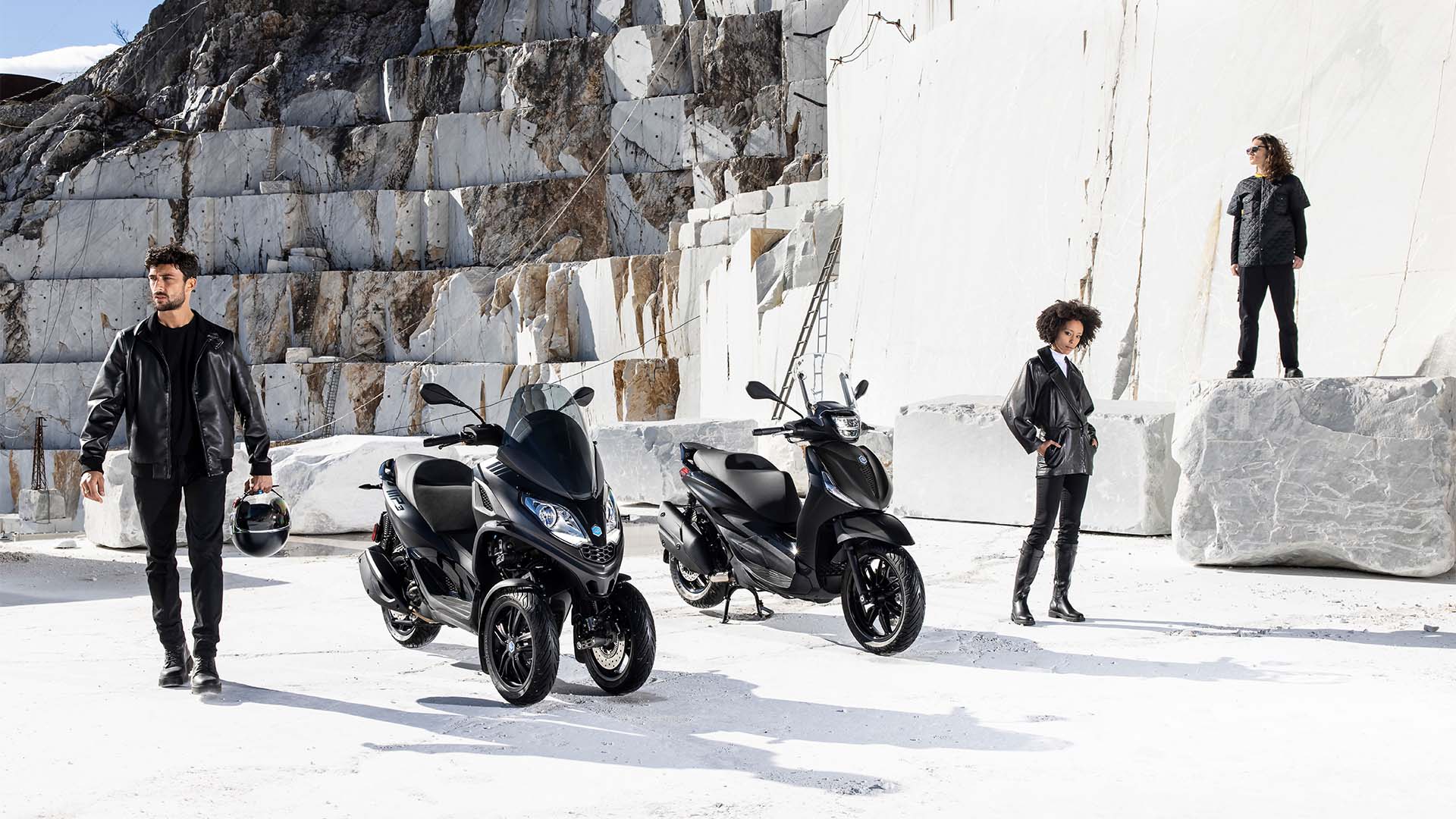 Entdecken Sie den attraktiven Look des Piaggio Beverly und des Piaggio MP3 im neuen Deep Black Design.