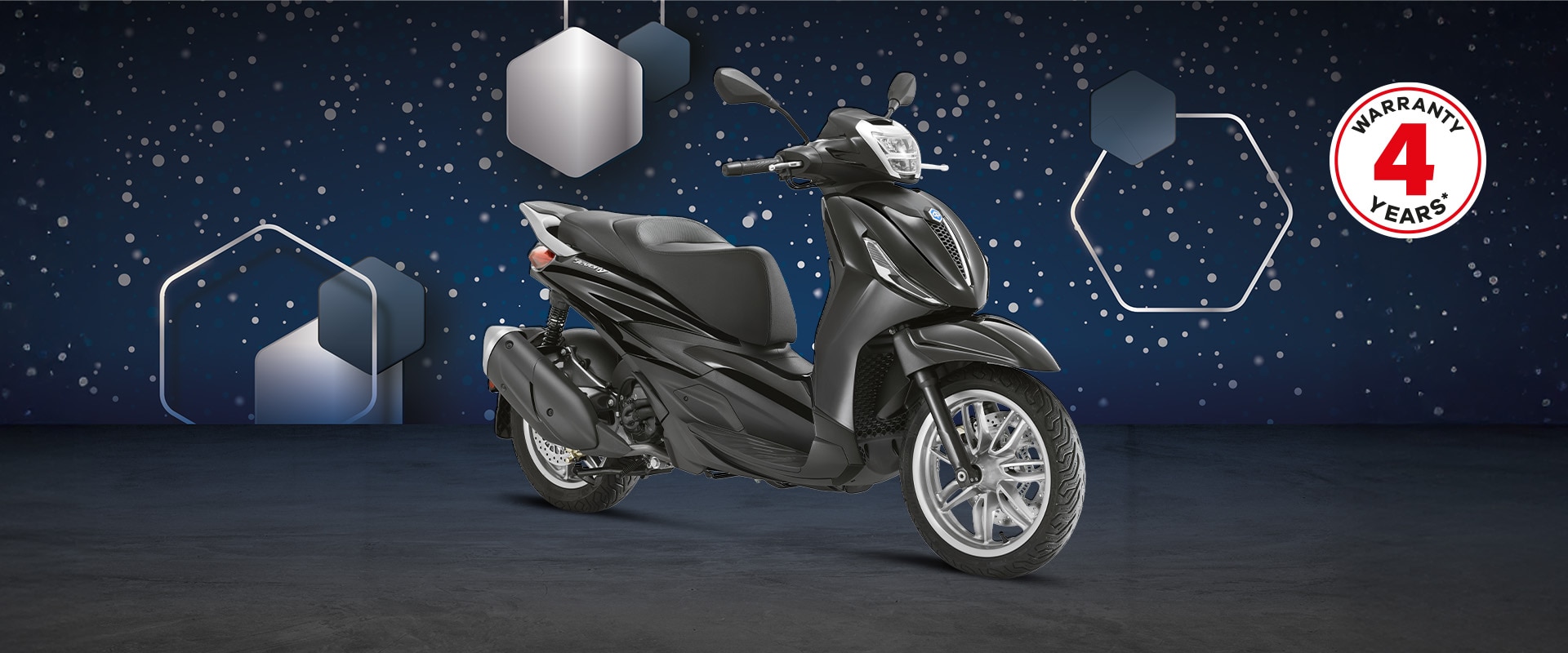 4-YEARS WARRANTY ON THE PIAGGIO E5+ RANGE. NO STRESS, ENDLESS EMOTIONS.
