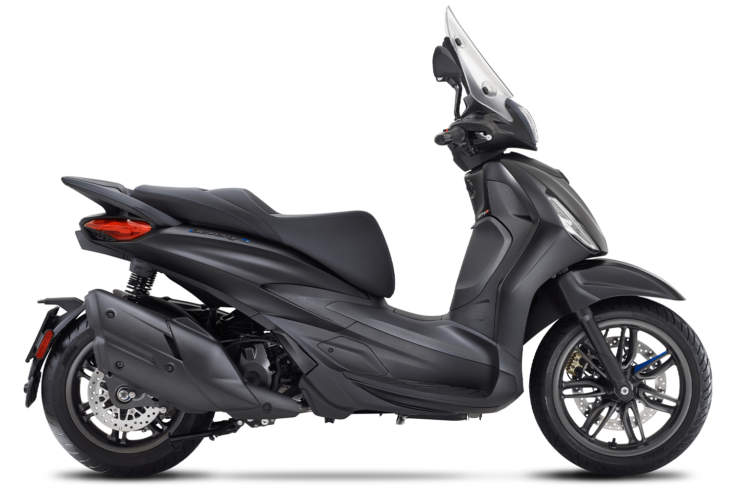 De Piaggio Beverly S onderscheidt zich door zijn sportieve ziel: de matte graphitekleur afwerking onderscheidt details zoals de velgen, de achterhandgrepen en de omlijsting van het instrumentenpaneel en de LED-koplamp. Blauwe accenten op de “S” van het logo, het voorwiel en de kenmerkende stropdas benadrukken zijn no-nonsense karakter. De kenmerkende voorkant, met een V-vormig met honingraat structuur ventilatierooster, samen met de gestroomlijnde achterkant en tweekleurige stiksels op het zadel, maken het ontwerp compleet en vormen de perfecte fusie tussen een sportieve scooter met hoge wielen en een krachtige GT.
