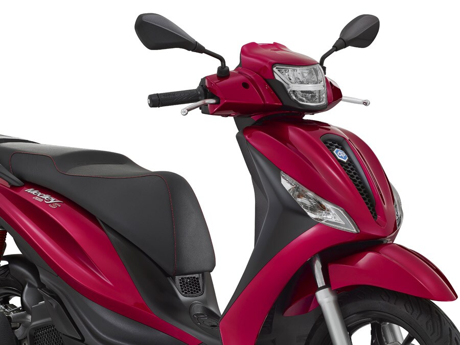 A potência, por outro lado, é confiada ao novíssimo Piaggio i-get 4 tempos e 4 válvulas, refrigerado a líquido, com sistema start & stop aprovado EURO 5. Os 11 kW de potência colocam-no como o motor mais potente no segmento das rodas médio-altas sem nunca perder de vista o foco na redução do consumo. A Medley S expressa a sua desportividade com acabamentos em preto mate e nalguns componentes em vermelho. O selim desportivo dedicado completa o equipamento.
